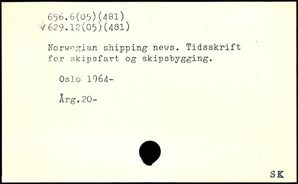 Norwegian shipping news. Tidsskrift for skipsfart og skipsbygging. Oslo 1964-Årg.20-
