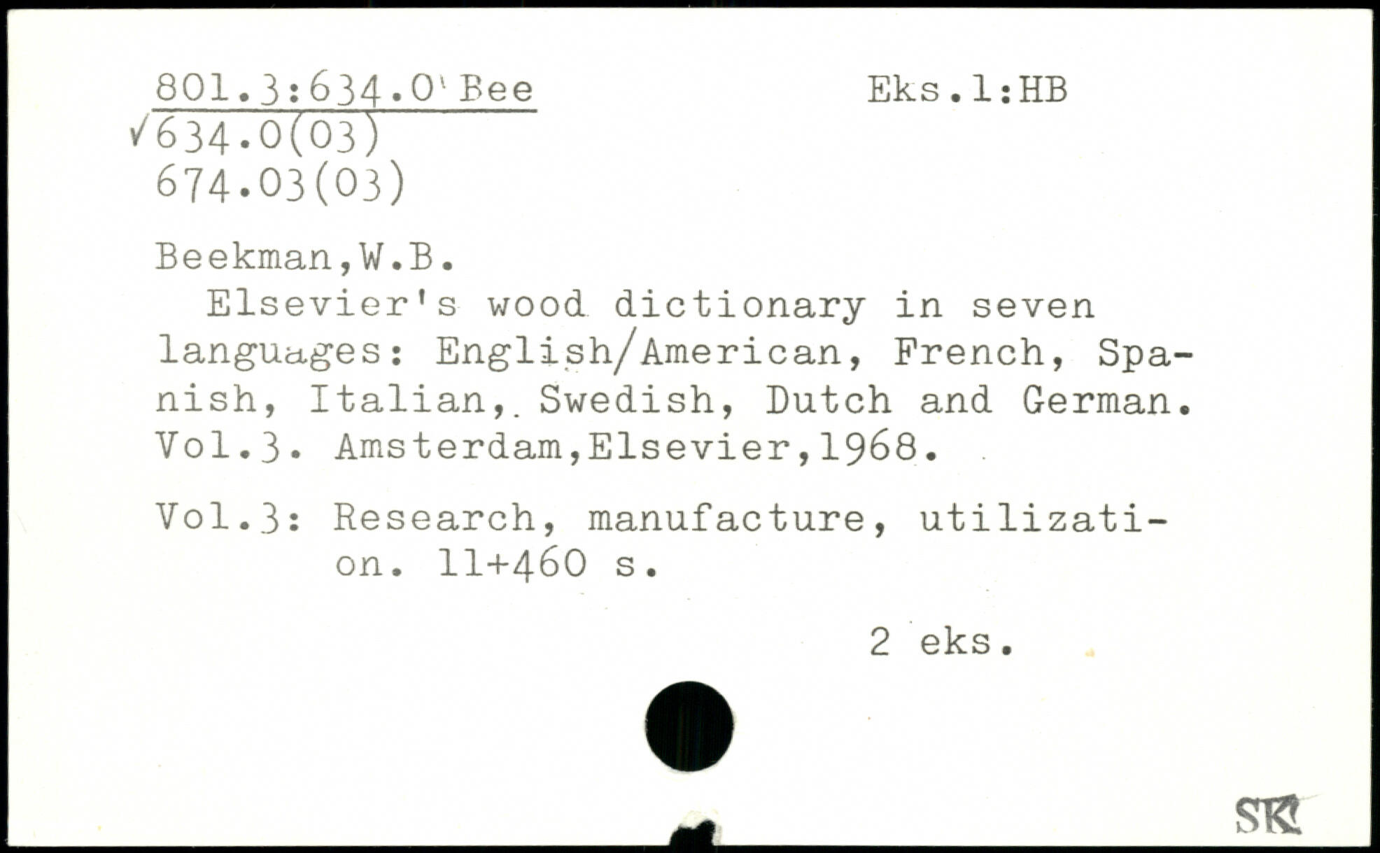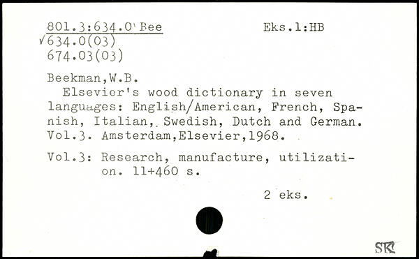 Elsevier's wood dictionary in seven languages: English/American, French, Spanish, Italian,. Swedish, Dutch and German.