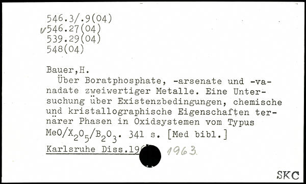 Über Boratphosphate, -arsenate und -vanadate zweiwertiger Metalle. Eine Untersuchung über Existenzbedingungen, chemische und kristallographische Eigenschaften ternärer Phasen in Oxidsystemen vom Typus Me0/X205/B203.
