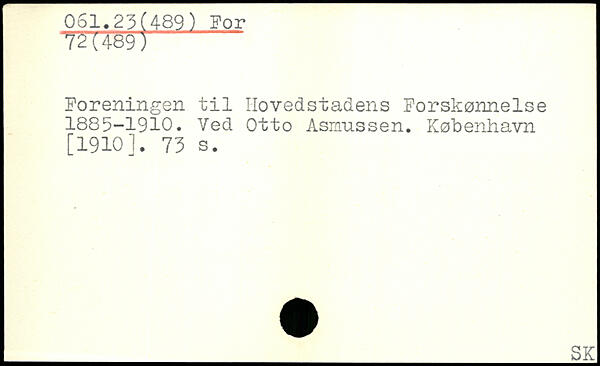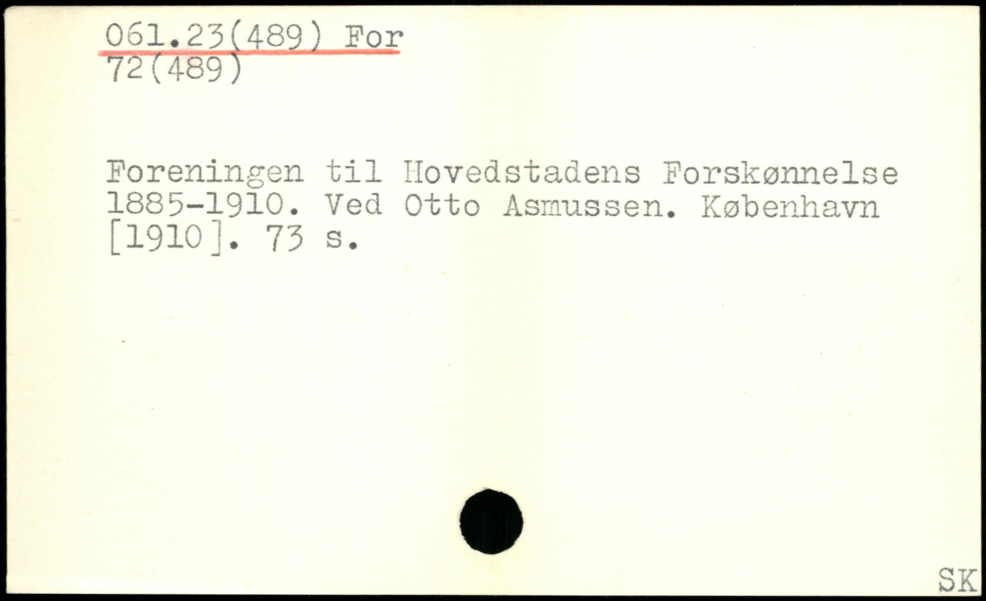 Foreningen til Hovedstadens Forskønnelse 1885-1910. Ved Otto Asmussen.