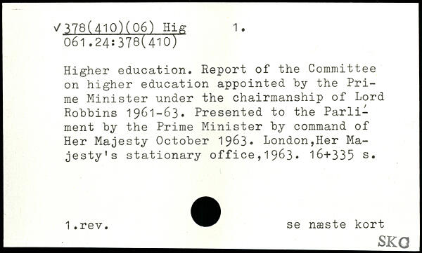 Higher education. Report of the Committee on higher education appointed by the Prime Minister under the chairmanship of Lord Robbins 1961-63. Presented to the Parli-ment by the Prime Minister by command of Her Majesty October 1963, London,Her Majesty’s stationary office,19^3