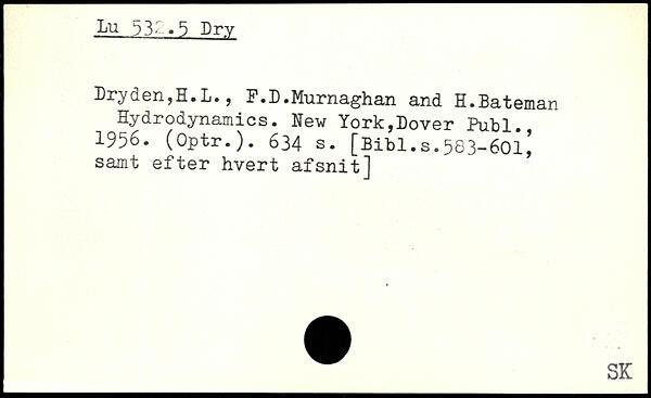 Dryden,H.L., P.D.Murnaghan and H.Bateman Hydrodynamics.