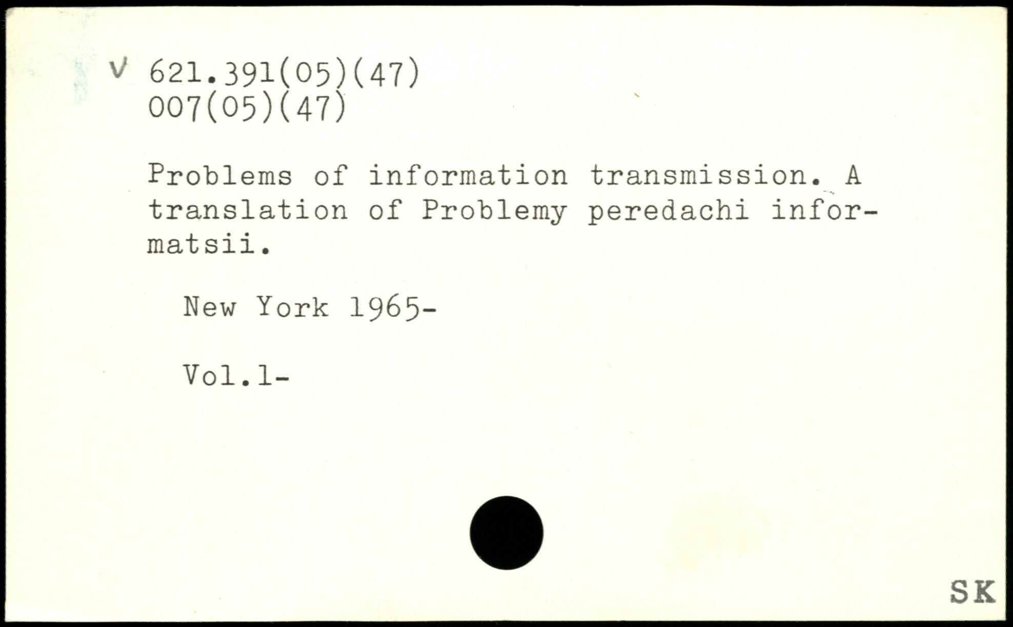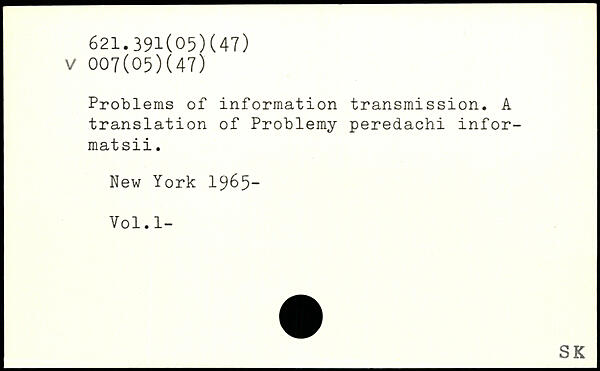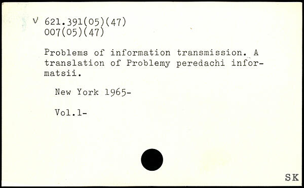 Problems of information transmission. A translation of Problemy peredachi informât sii.