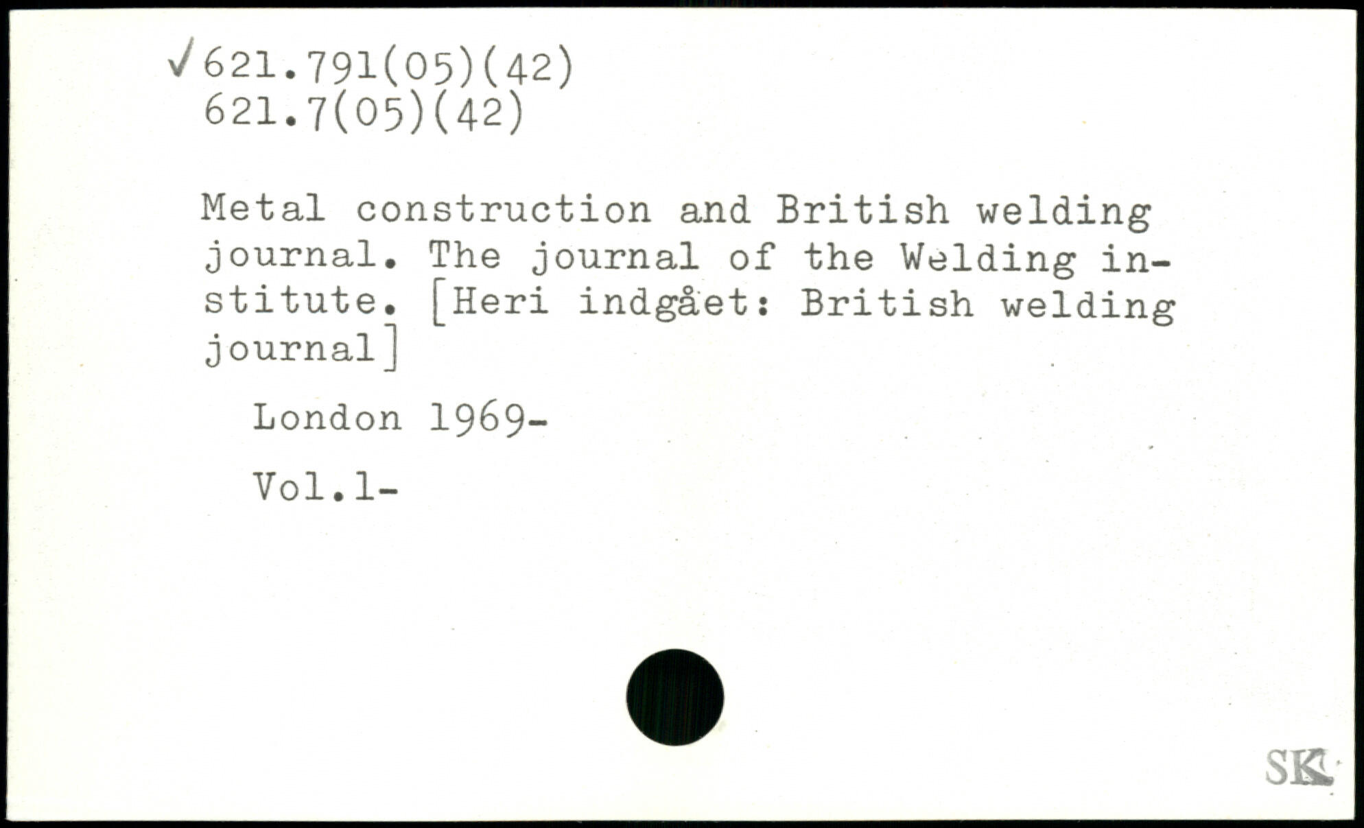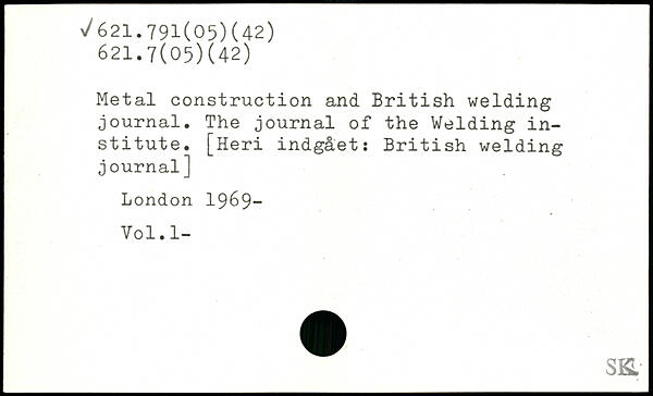 Metal construction and British welding journal. The journal of the Welding institute. [Heri indgået: British welding journal]