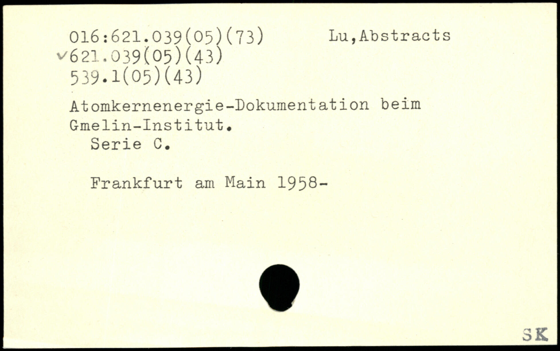 Atomkernenergie-Dokumentat ion beim Gmelin-Inst itut. Serie C.