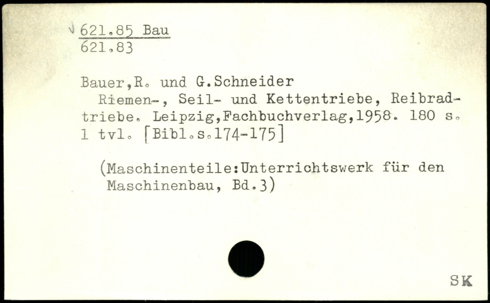 Riemen-, Seil- und Kettentriebe, Reibrad-triebe, Leipzig,Fachbuchverlag,1960, 180 1 tvlo [Bibi,Sol74-175]