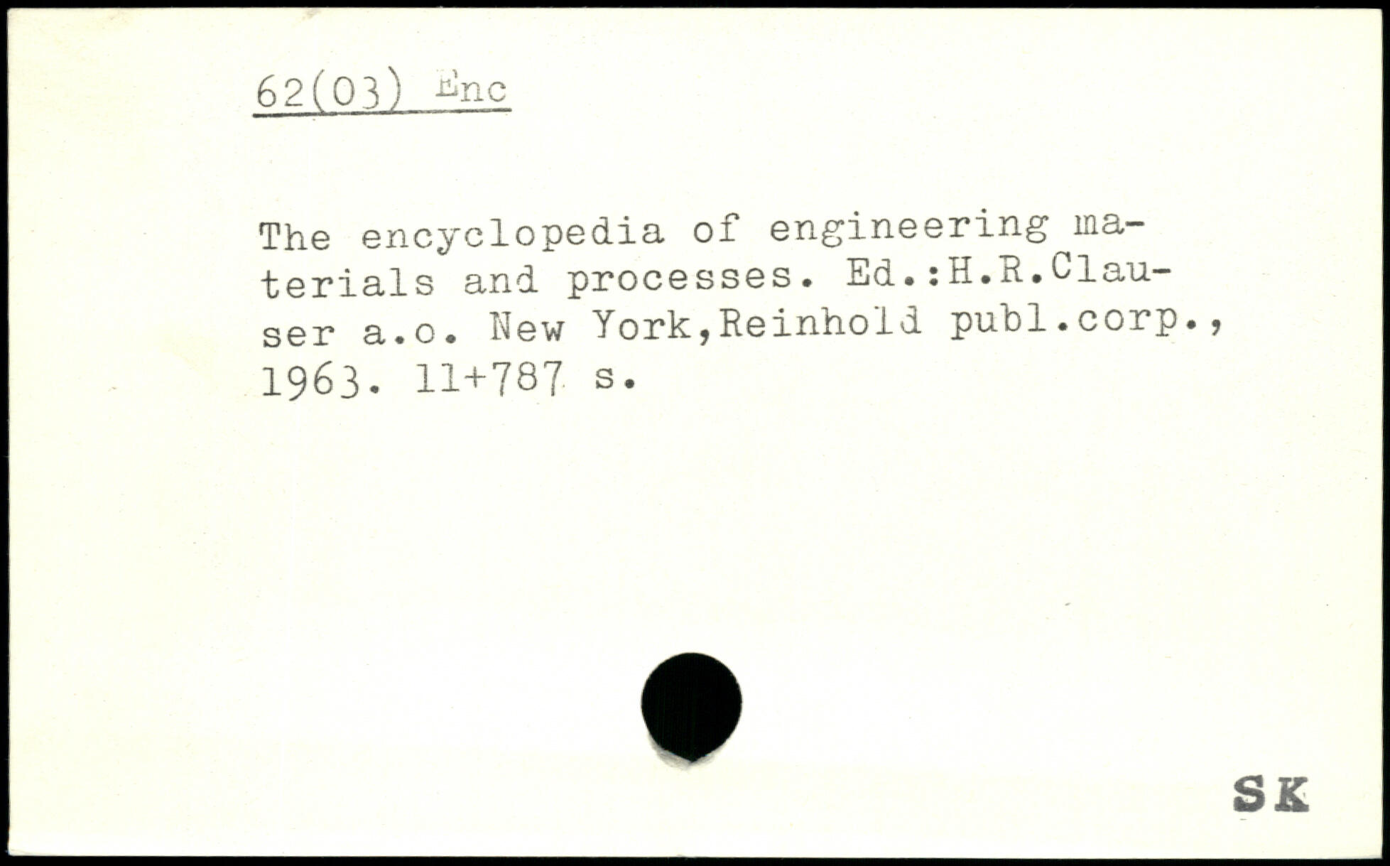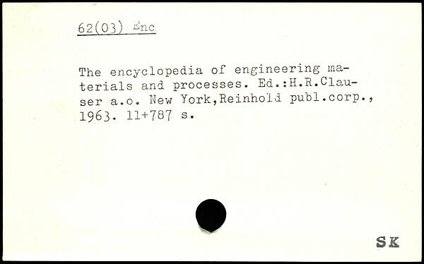 The encyclopedia of engineering materials and processes. Ed.:H.R.^lau-ser a.o. New York,Reinhold publ.corp., 1963.