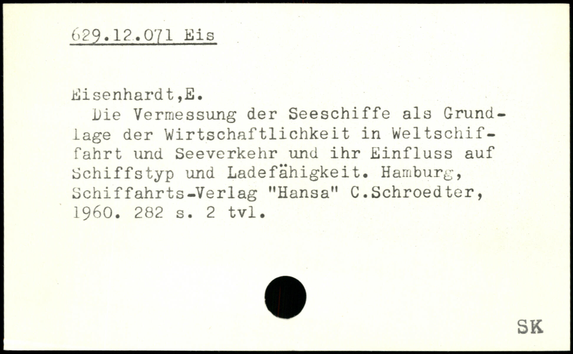 Die Vermessung der Seeschiffe als Grundlage der Wirtschaftlichkeit in Weltschiffahrt und Seeverkehr und ihr Einfluss auf Schiffstyp und Ladefähigkeit. Hamburg, Schiffahrts-Verlag "Hansa" C.Schroedter, 1960.