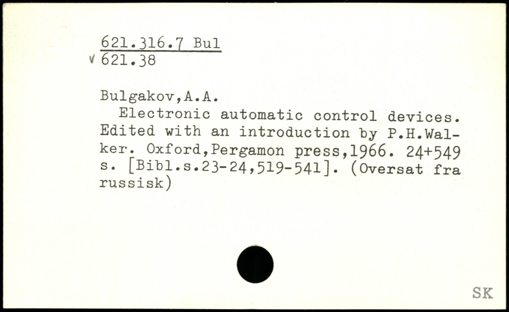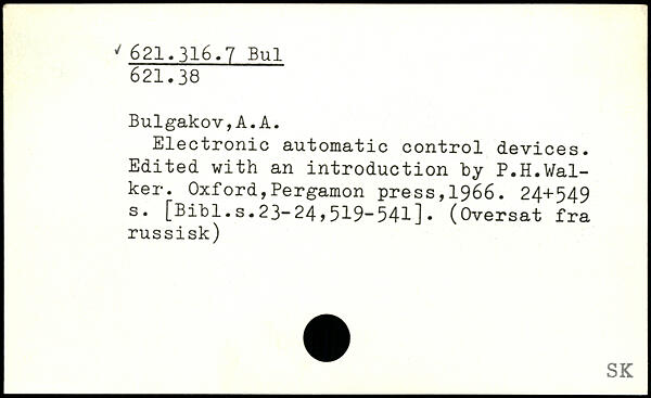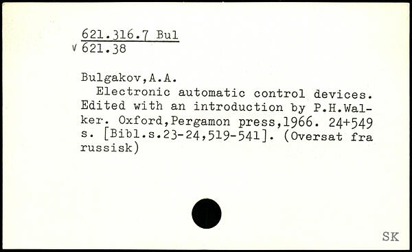 Electronic automatic control devices. Edited with an introduction by P.H.Walker.