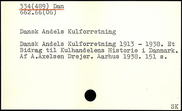 Gzz.ä'mi Dansk Andels Kulforretning Dansk Andels Kulforretning 1913 - 1938. Et Bidrag til Kulhandelens Historie i Danmark. Af A.Axelsen Drejer.