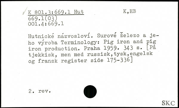 Hutnické nazvoslovi. Surove zelezo a je-ho vyroba Terminology: Pig iron and pig iron production.