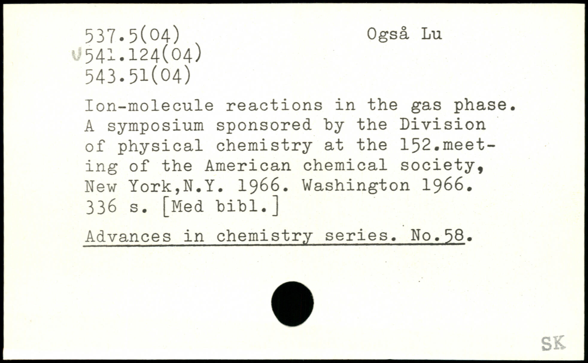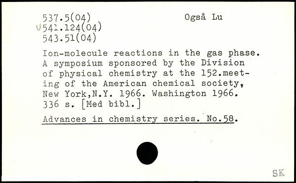 Ion-molecule reactions in the gas phase. A symposium sponsored hy the Division of physical chemistry at the 152.meeting of the American chemical society, New York,N.Y. 1966.