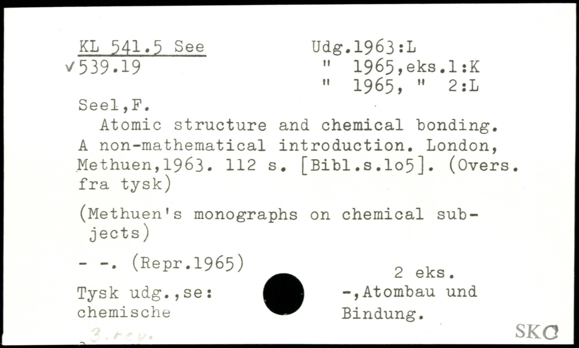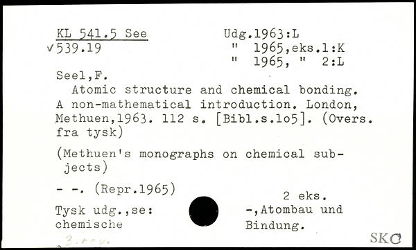 " 1965, " 2:L Seel,F. Atomic structure and chemical bonding. A non-mathematical introduction.
