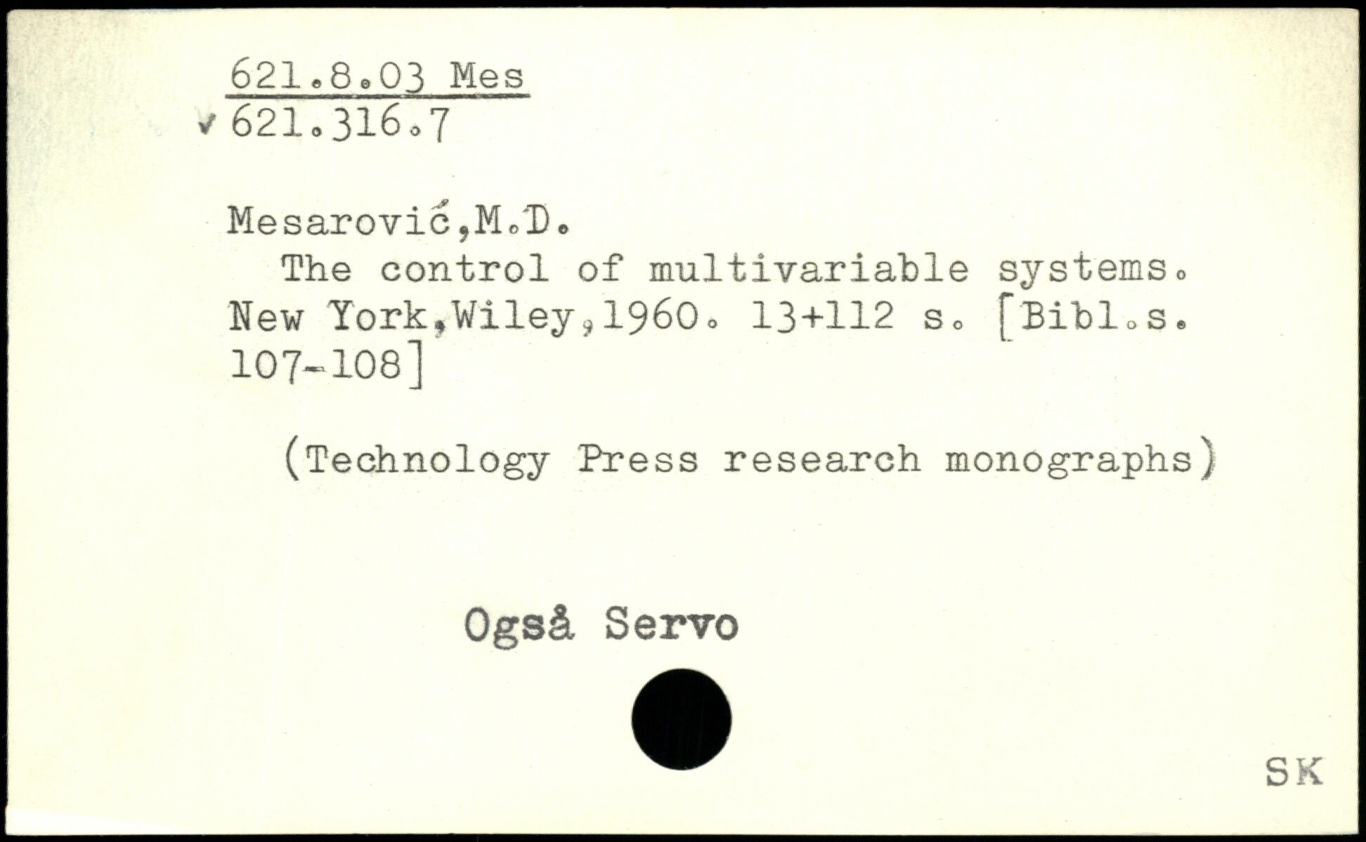 The control of multivariable systems. New York,Wiley#1960.