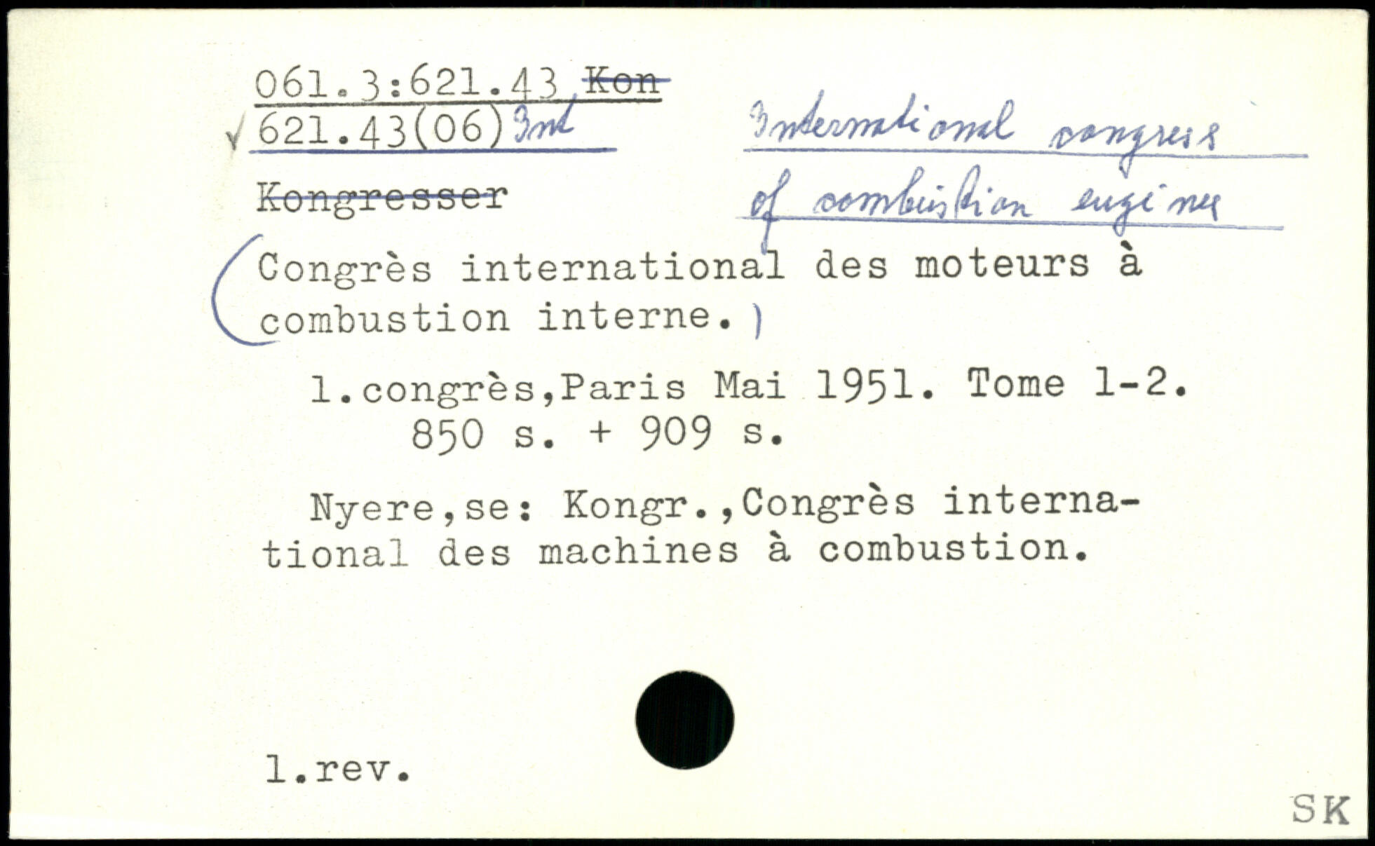 ICongreaoGT ff a {Congrès international des moteurs à ^combustion interne. ) 1.congrès,Paris Mai 1951. Tome 1-2.