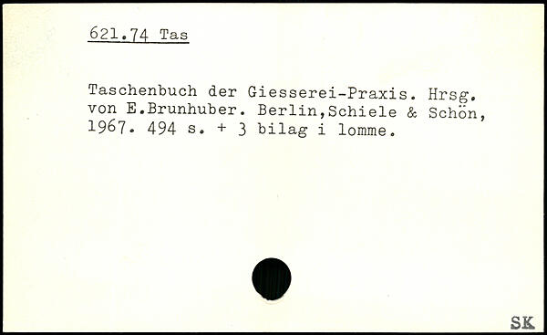 Taschenbuch der Giesserei-Praxis. Hrsg, von E.Brunhuber.