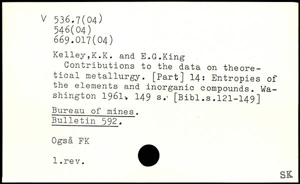 Contributions to the data on theoretical metallurgy. [Part] 14s Entropies of the elements and inorganic compounds.