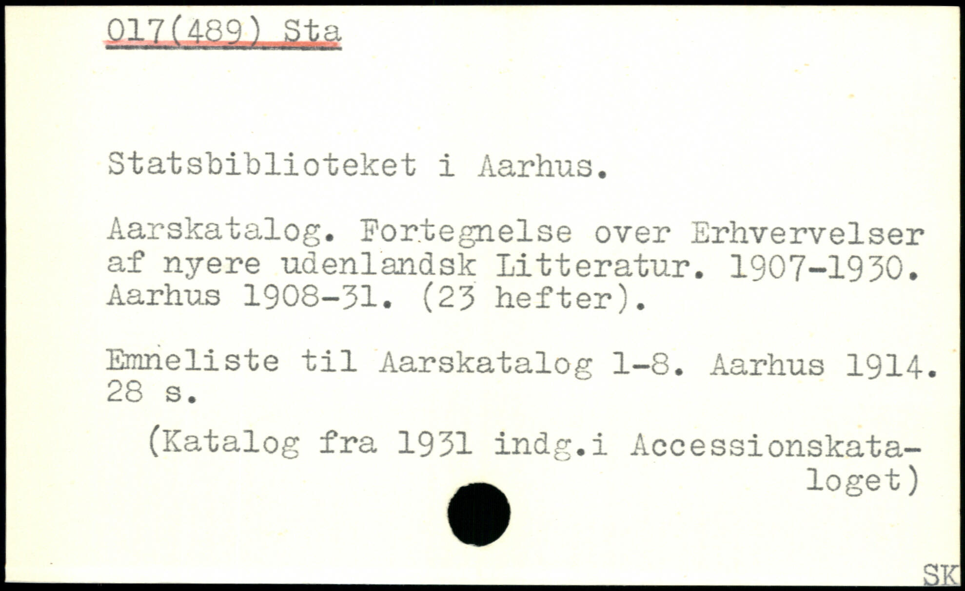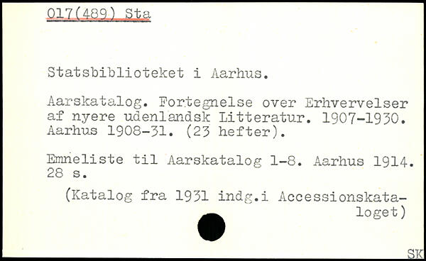 Aarskatalog. Fortegnelse over Erhvervelser af nyere udenlandsk Litteratur. 1907-1930.