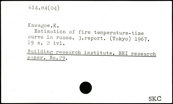 Estimation of fire temperature-time curve in rooms. 3.report. (Tokyo) 1967