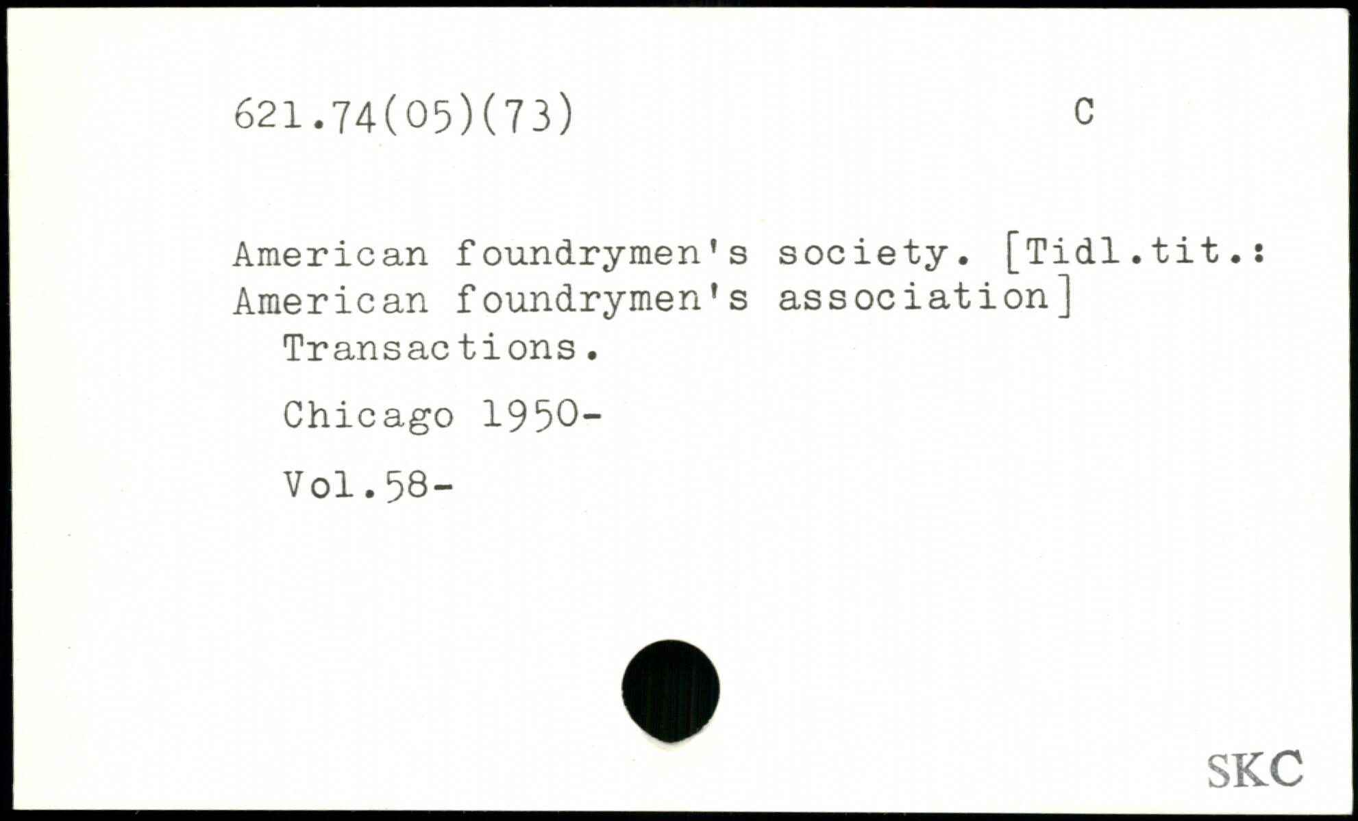 American foundrymen's society. [Tidl.tit.: : American foundrymen's association] Transactions.