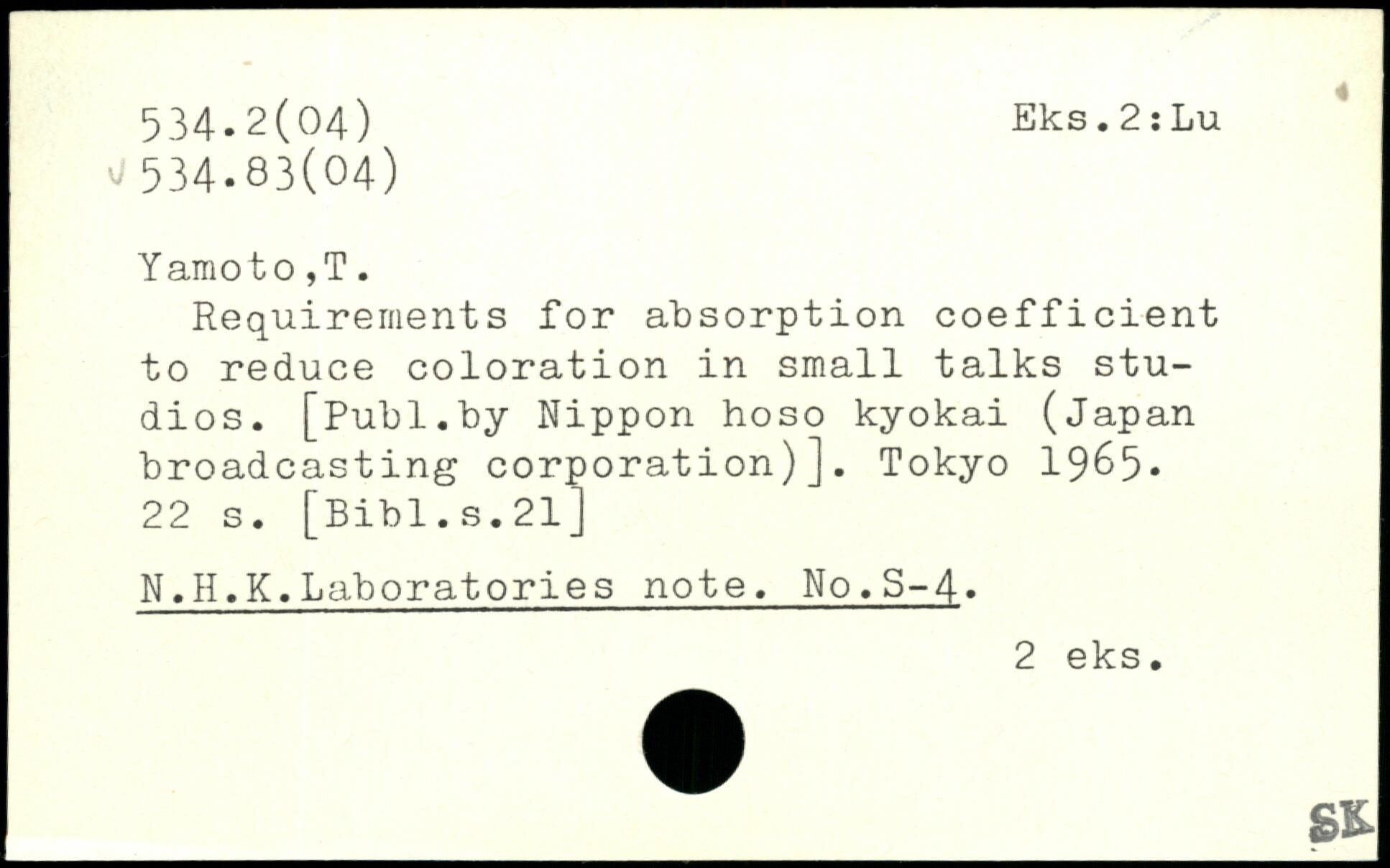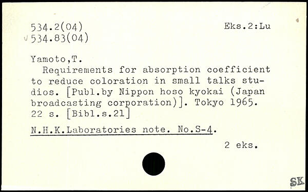 Requirements for absorption coefficient to reduce coloration in small talks studios.