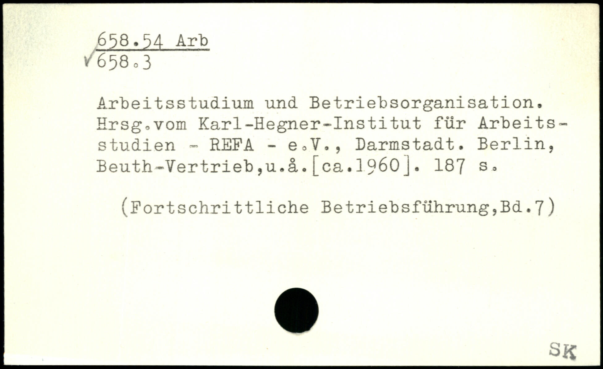 Arbeitsstudien und Betriebsorganisation. Hrsg^vom Karl-Hegner-Institut für Arbeitsstudien - REFA - e.V., Darmstadt. Berlin, Beuth-Vertrieb,u.ä.[ca.1960].