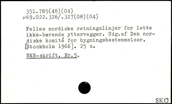 Felles nordiske retningslinjer for lette ikke-bærende yttervegger. Udg.af Den nordiske komité for bygningsbestemmelser. (