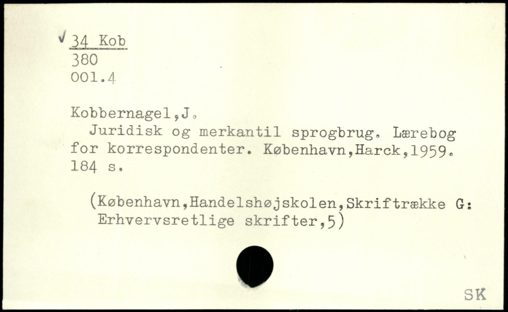 Juridisk og merkantil sprogbrug. Lærebog for korrespondenter. København,Harck.1959.