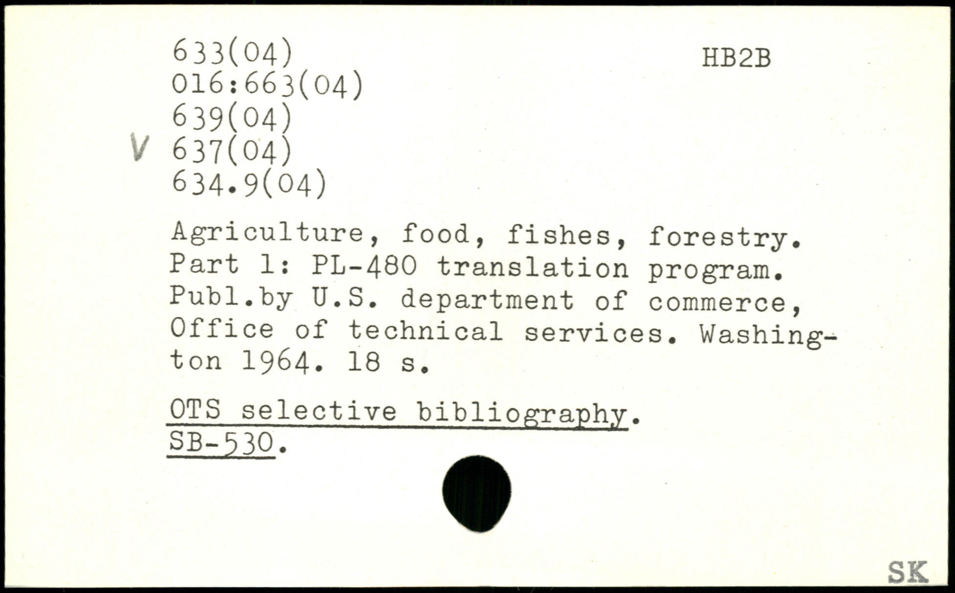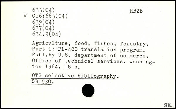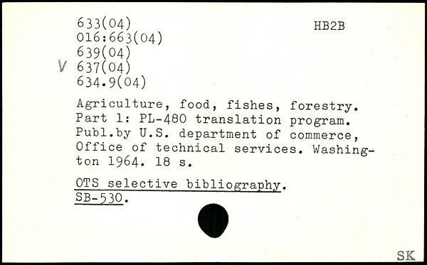 Agriculture, food, fishes, forestry. Part 1: PL-480 translation program.