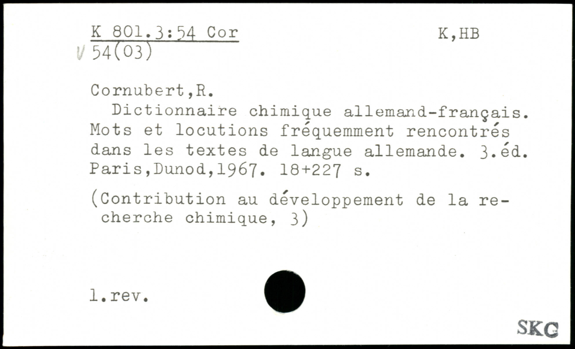Dictionnaire chimique allemand-français. Mots et locutions fréquemment rencontrés dans les textes de langue allemande. 3.éd.