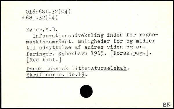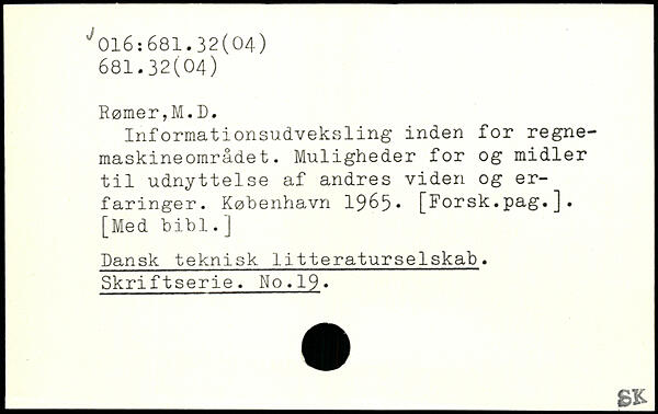 Informationsudveksling inden for regnemaskineområdet. Muligheder for og midler til udnyttelse af andres viden og erfaringer.