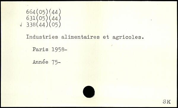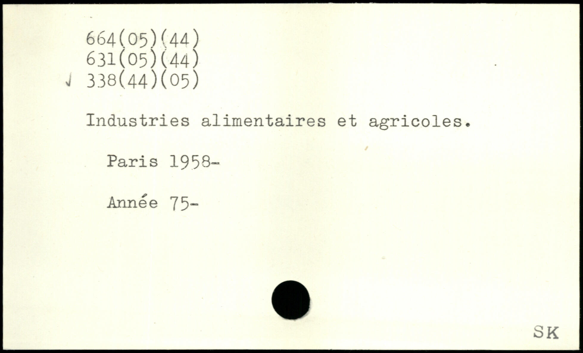 Industries alimentaires et agricoles. Paris 195S-Année 75-