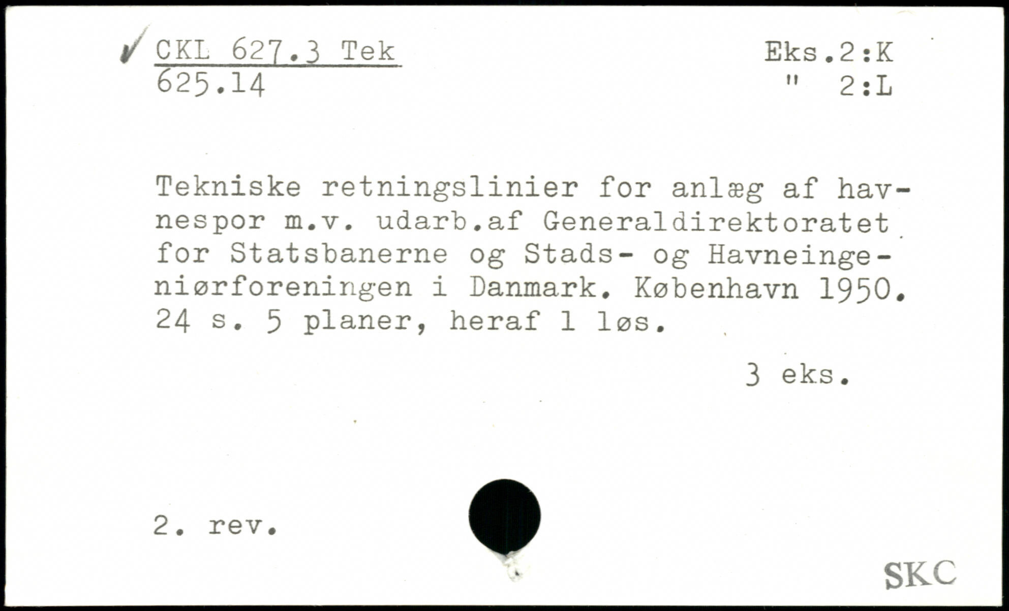 Tekniske retningslinier for anlæg af havnespor m.v. udarb.af Generaldirektoratet for Statsbanerne og Stads- og Havneingeniørforeningen i Danmark.