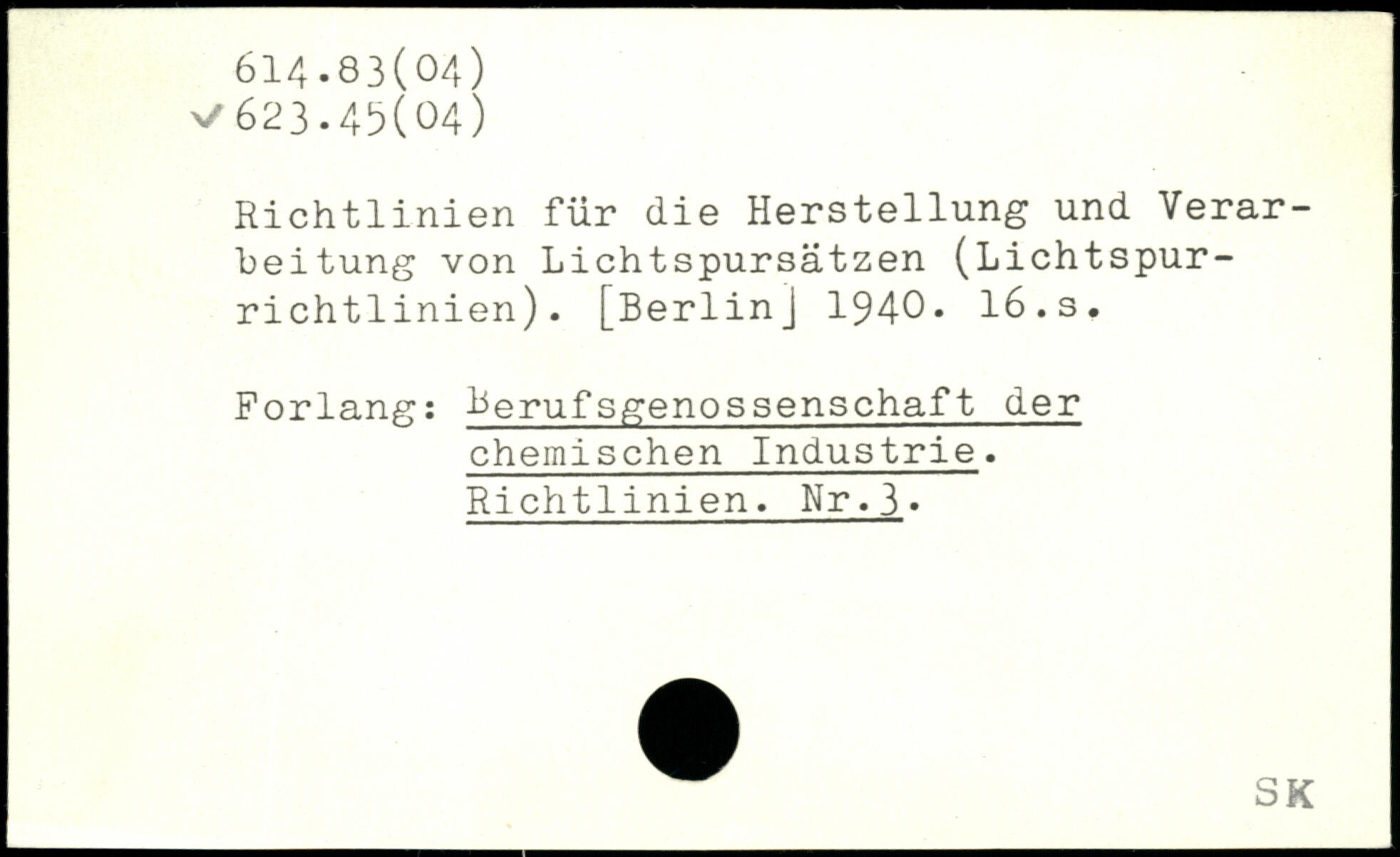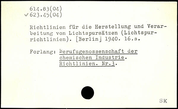 Richtlinien für die Herstellung und Verarbeitung von Lichtspursätzen (Lichtspurrichtlinien). [BerlinJ 1940. 16.s. Forlang: Berufsgenossenschaft der chemischen Industrie. Richtlinien. Nr.3