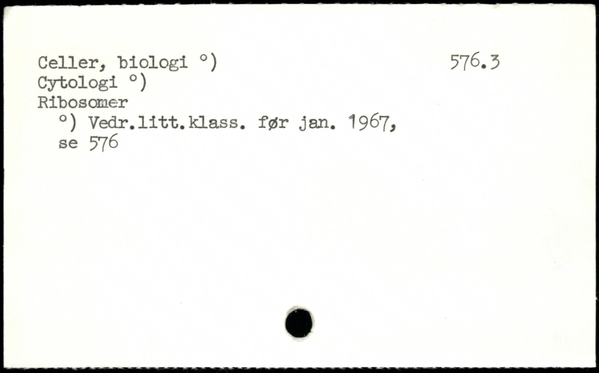 Celler, biologi .) 576.3 Cytologi .) Ribosomer .) Vedr.litt.klass. før jan. 19^7> se 576