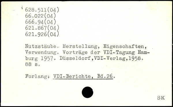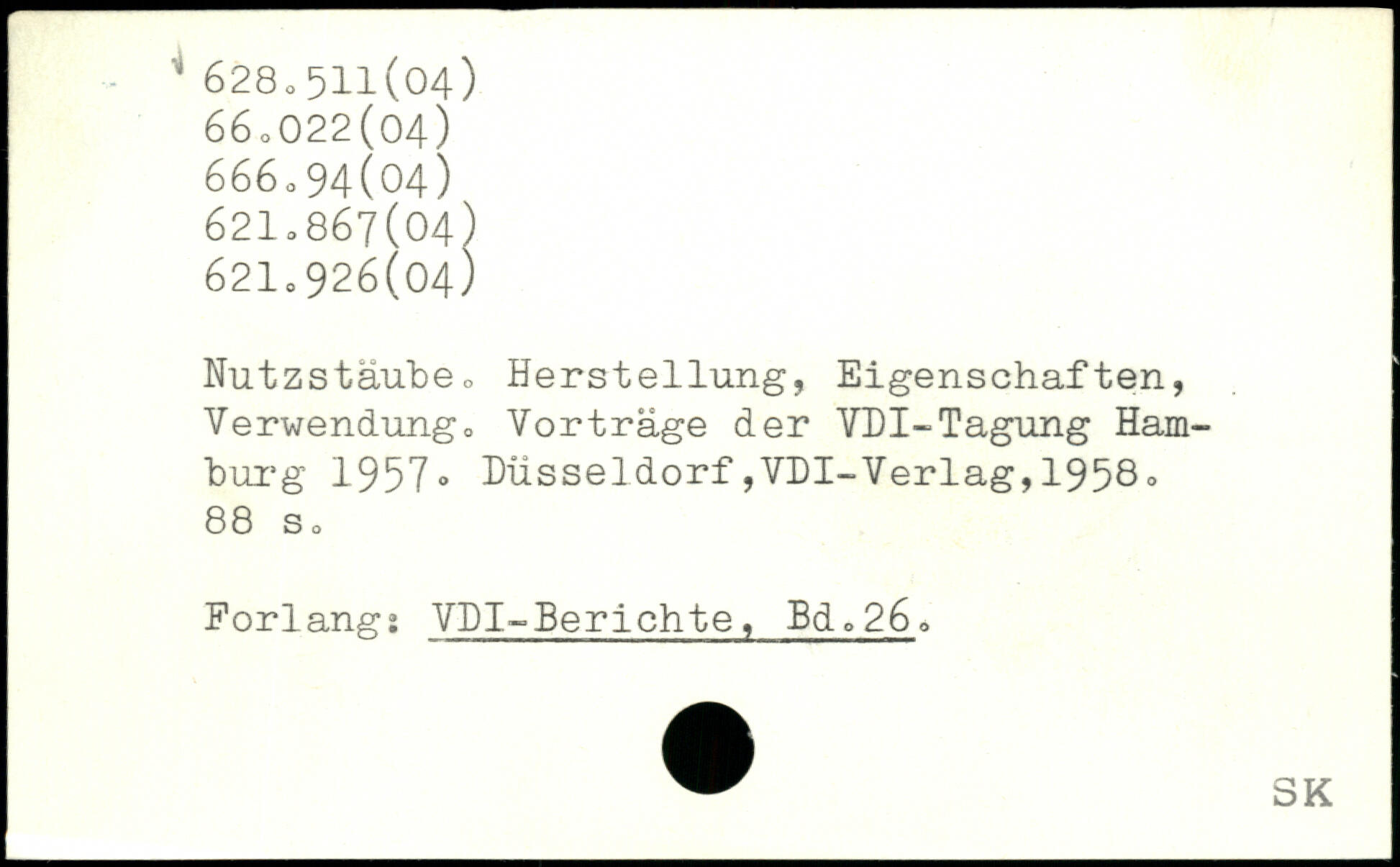 Nutzstäübe, Herstellung, Eigenschaften, Verwendung, Vorträge der VDI-Tagung