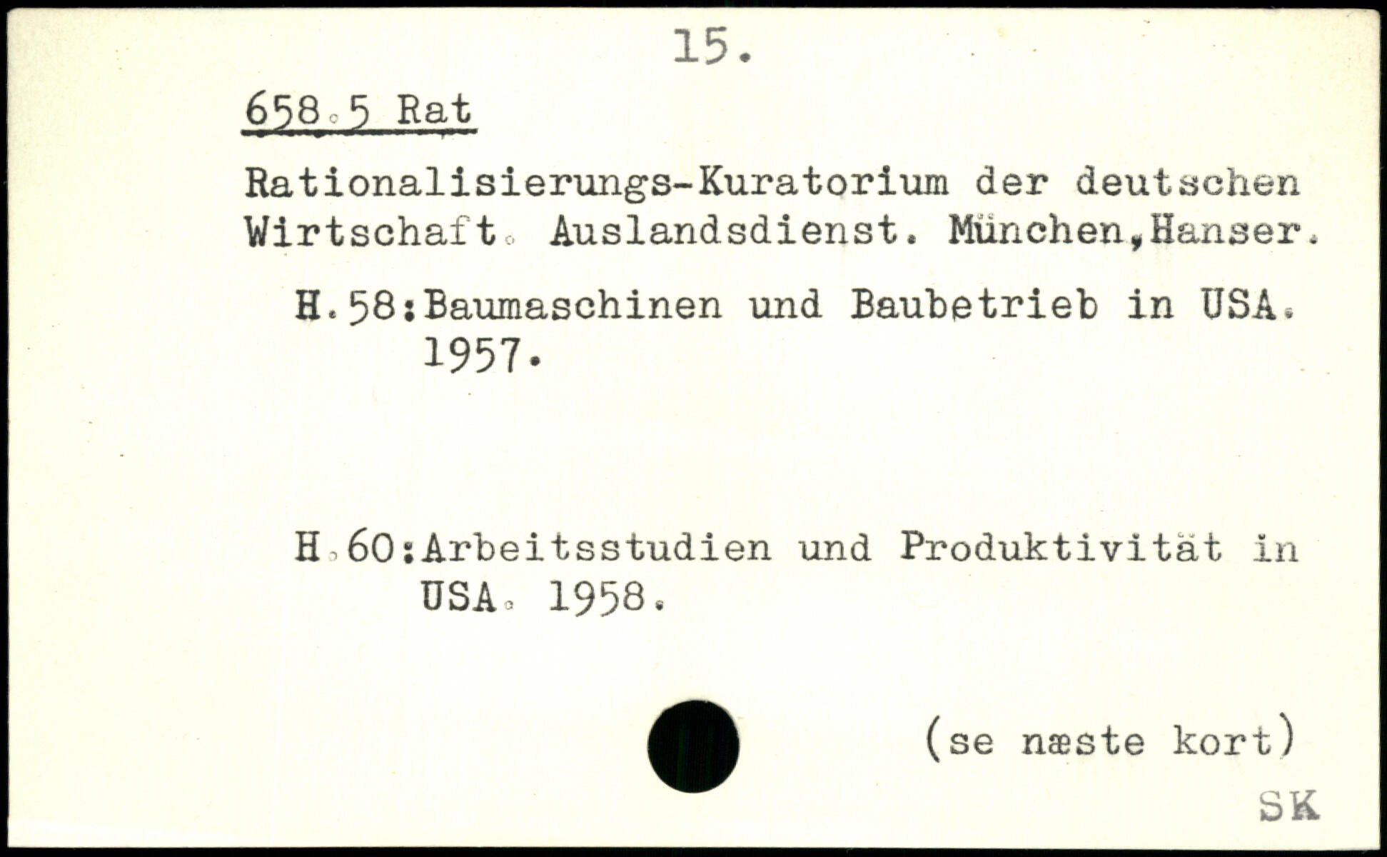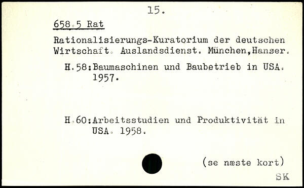 Rationalisierungs-Kuratorium der deutschen Wirtschafte, Auslandsdienst. München,Hanser. H.58;Baumaschinen und Baubetrieb in USA. 1957. H60:Arbeitsstudien und Produktivität in USA, 1958,