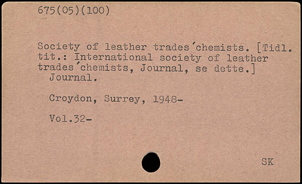 Society of leather trades 'chemists. [Tidl. tit.: International society of leather trades'chemists, Journal, se dette.] Journal.