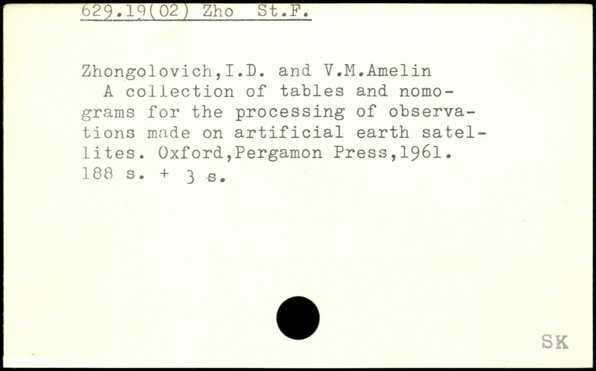 Zhongolovich,I.D. and V.M.Amelin A collection of tables and nomograms for the processing of observations made on artificial earth satellites.