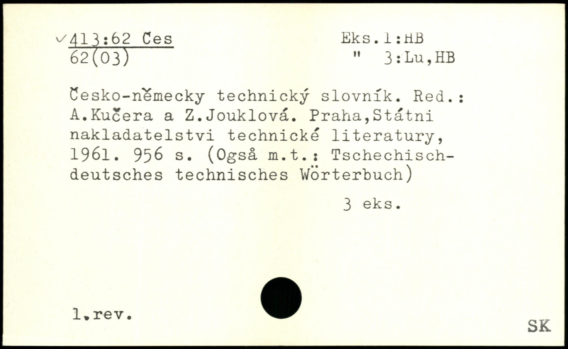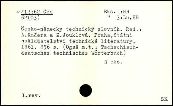 Cesko-nemecky technicky slovnik. Red.: A.Kucera a Z.Jouklovä.