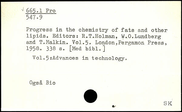 Progress in the chemistry of fats and other lipids. Editors: R.T.Holman, W.O.Lundberg and T.Malkin. V0I.5