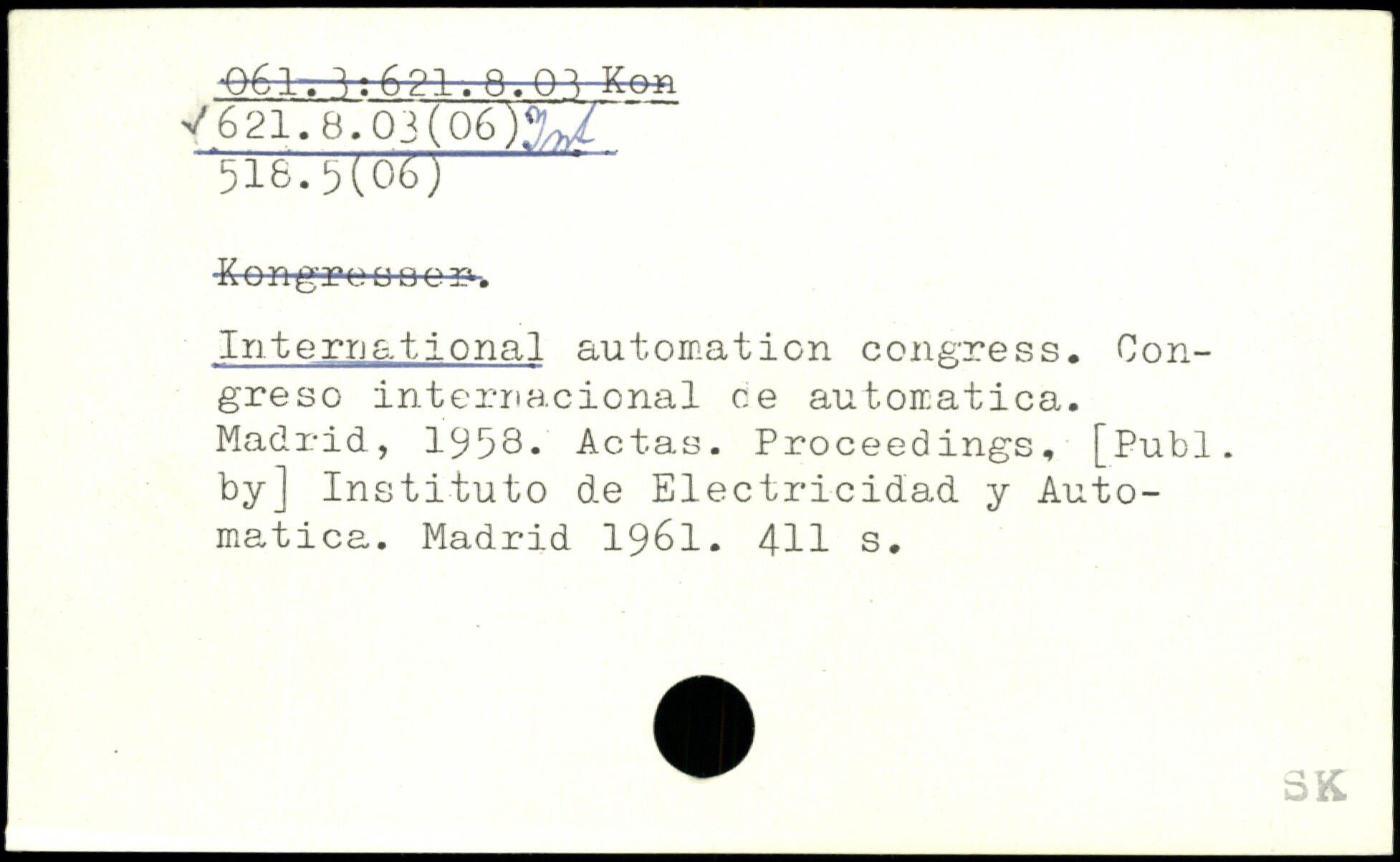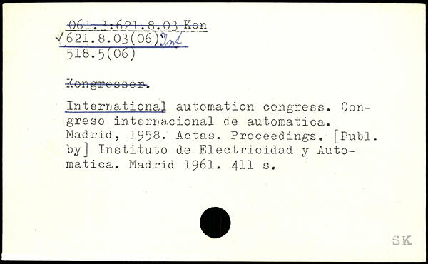 International automation congress. Oon-greso internacional ce automatica. Madrid, 1958- Actas. Proceedings