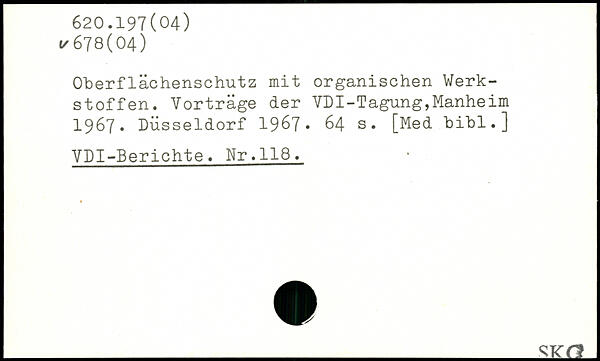 Oberflächenschutz mit organischen Werkstoffen. Yorträge der VDI-Tagung,Manheim 1967. Düsseldorf 1967