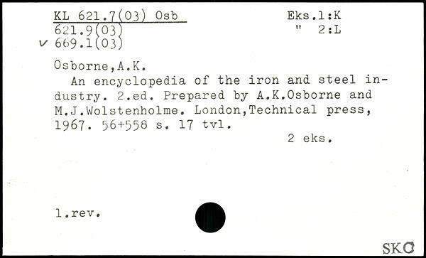 UDK: 621.7(03) Osb, 621.9(03), 2, 669.1(03)