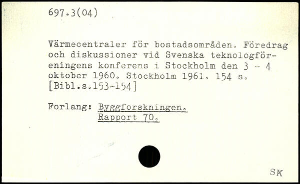 Värmecentraler for bostadsområden, Föredrag och diskussioner vid Svenska teknologför-eningens konferens i Stockholm den 3=4 oktober 1960.