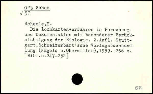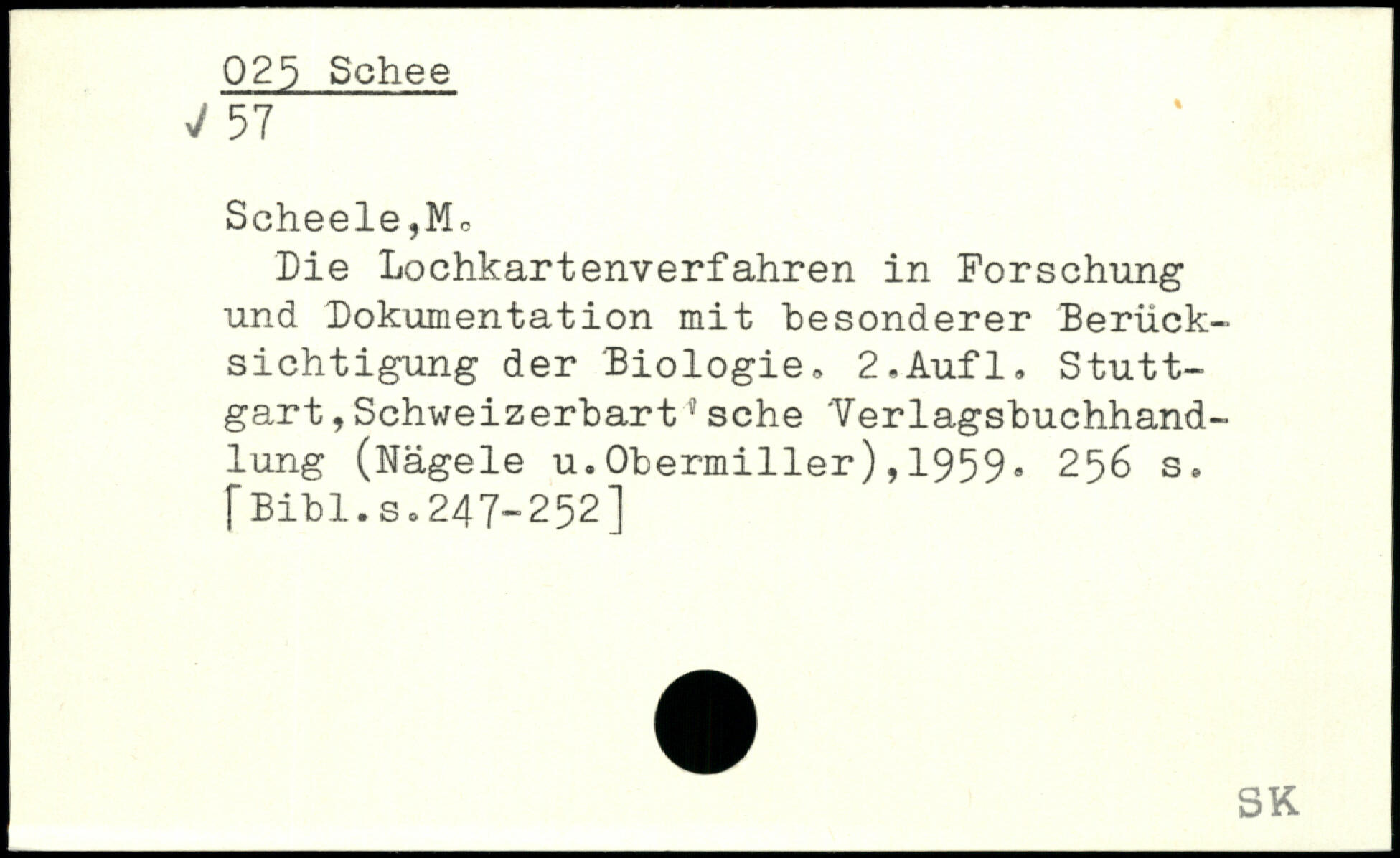 Die Lochkartenverfahren in Forschung und Dokumentation mit besonderer Berücksichtigung der Biologie.