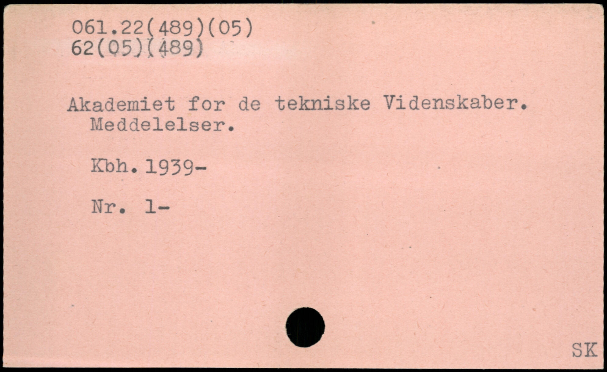 Akademiet for de tekniske Videnskaber. Meddelelser. Kbh. 1939- Nr. 1-