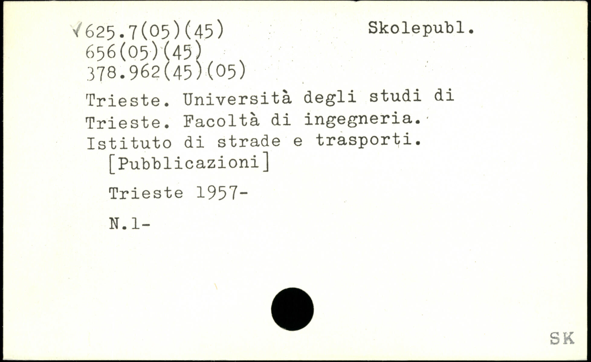 Trieste. Università degli studi di Trieste. Facoltà di ingegneria. Istituto di strade e trasporti. [Pubblicazioni] Trieste 1957-