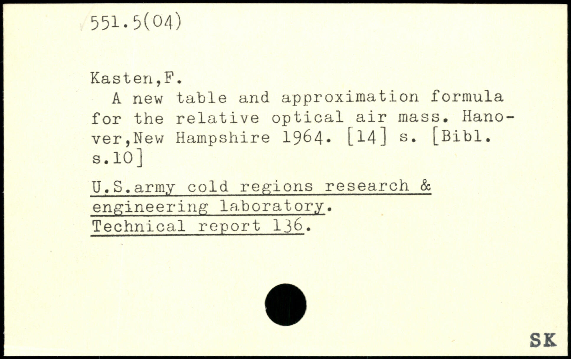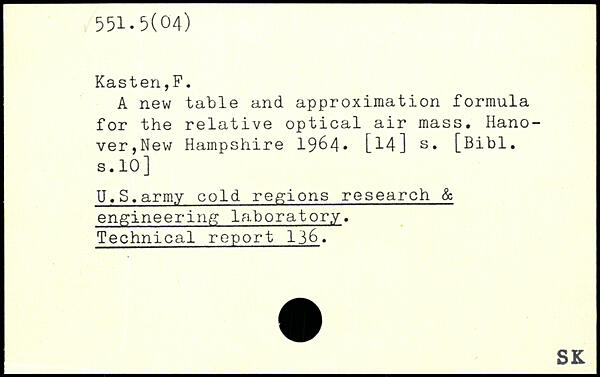 A new table and approximation formula for the relative optical air mass. Hanover,New Hampshire 1964, [14] s.