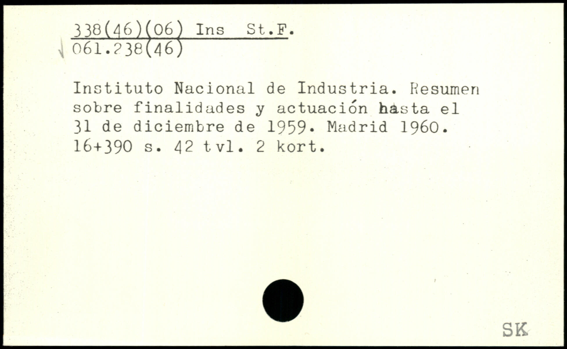 Instituto Nacional de Industria. Resumen sobre finalidades y actuacion hasta el 31 de diciembre de 1959